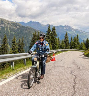 An einem Tag müssen 5500 Höhenmeter komprimiert auf 240 Kilometern mit der gebündelten Kraft von 50ccm bewältigen werden.
