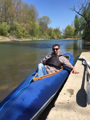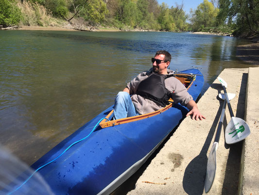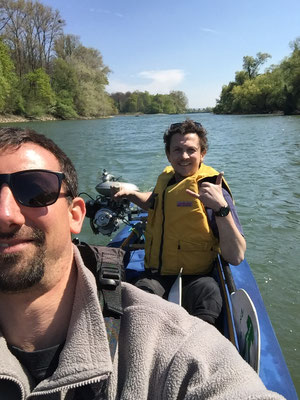 Leider reichte die Zeit nur für eine kleine Runde für den ersten Praxistest des Bootsmotors. Dieser lief tadellos und das Überqueren des Rheins war trotz der starken Strömung an dieser Stelle, aufgrund des kräftigen Vorschubs des Motors, ohne Probleme möglich.