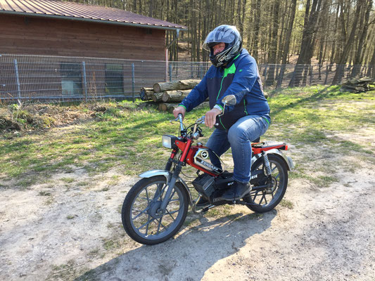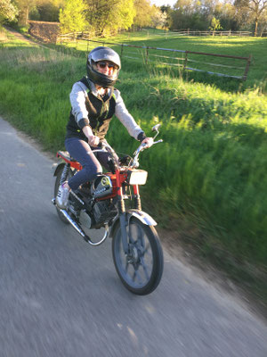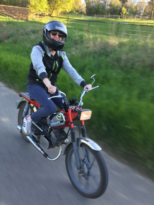 Sobald sich die Gelegenheit ergibt, zieht es Christiane alias "The Wheely" auf's Moped.